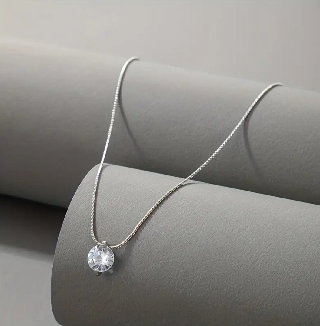 Sometimes it's the Simply things that stand out. This beautiful choker with a round cut zircon and invisible setting is stunning. Suspended on a clavicle chain