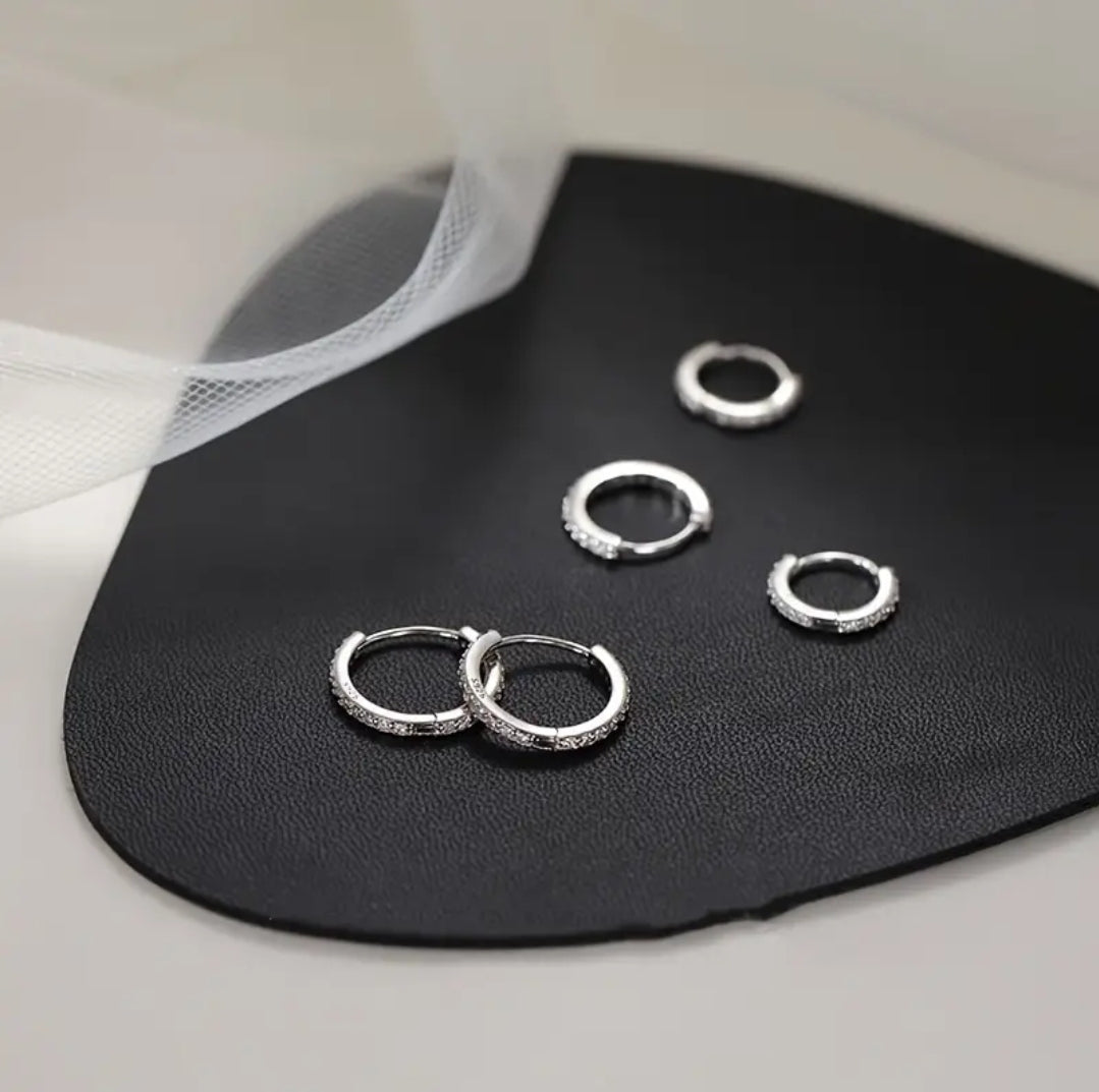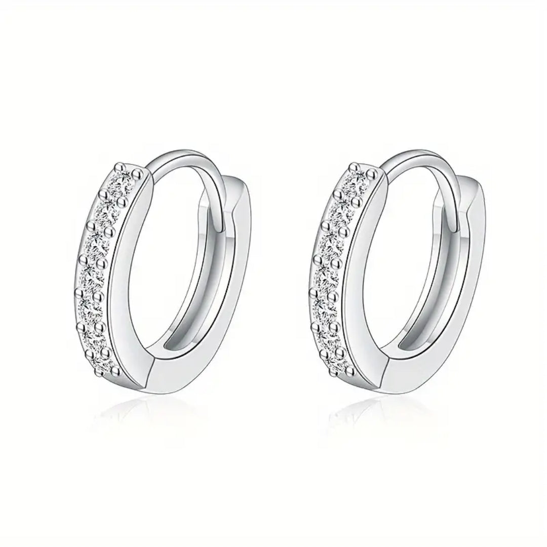 Delicate one row of micro round moissanite stones.S925 silver sets the stage for this elegant pair of huggy hoops.