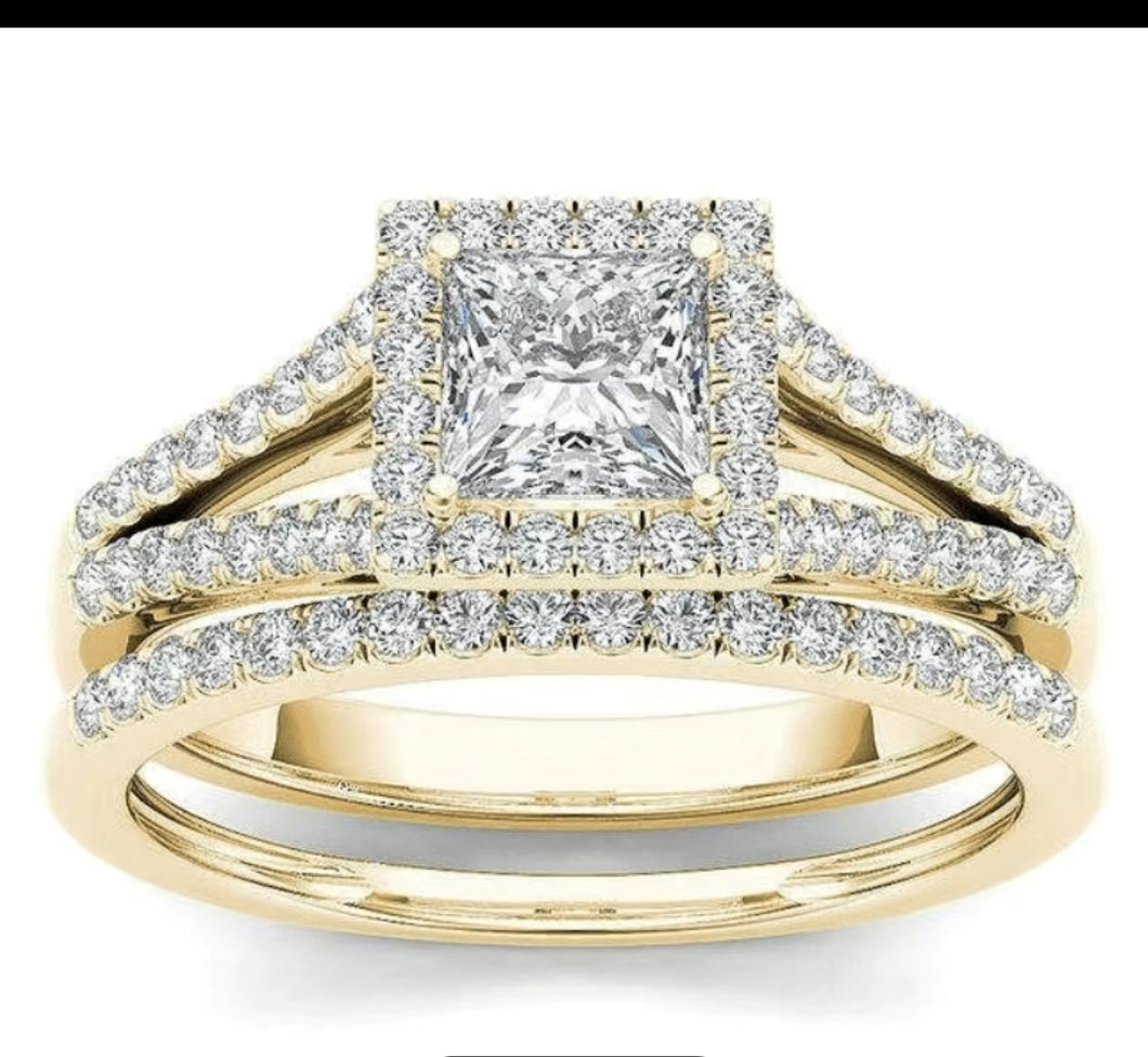 The Sarah- 2Pcs Gold/Zircon Wedding Set