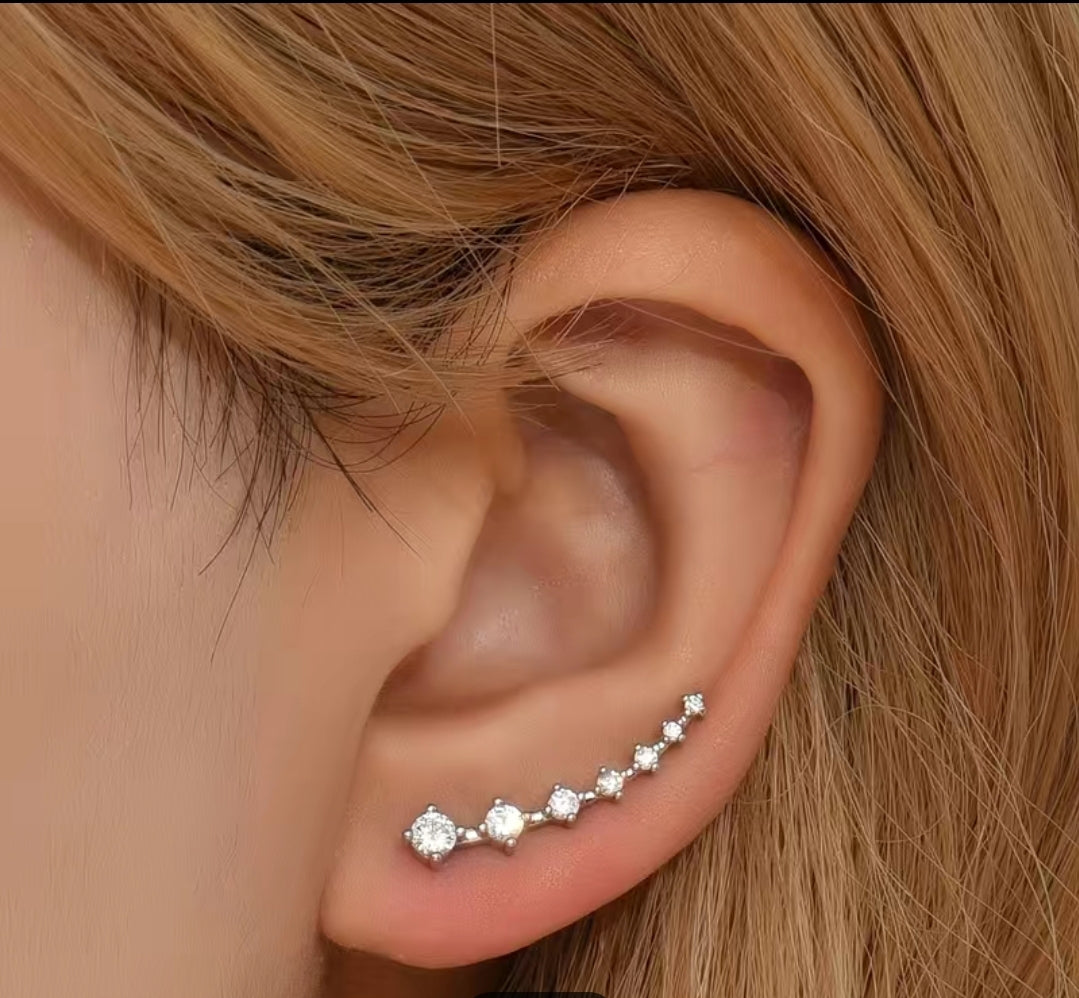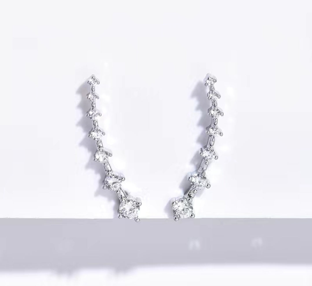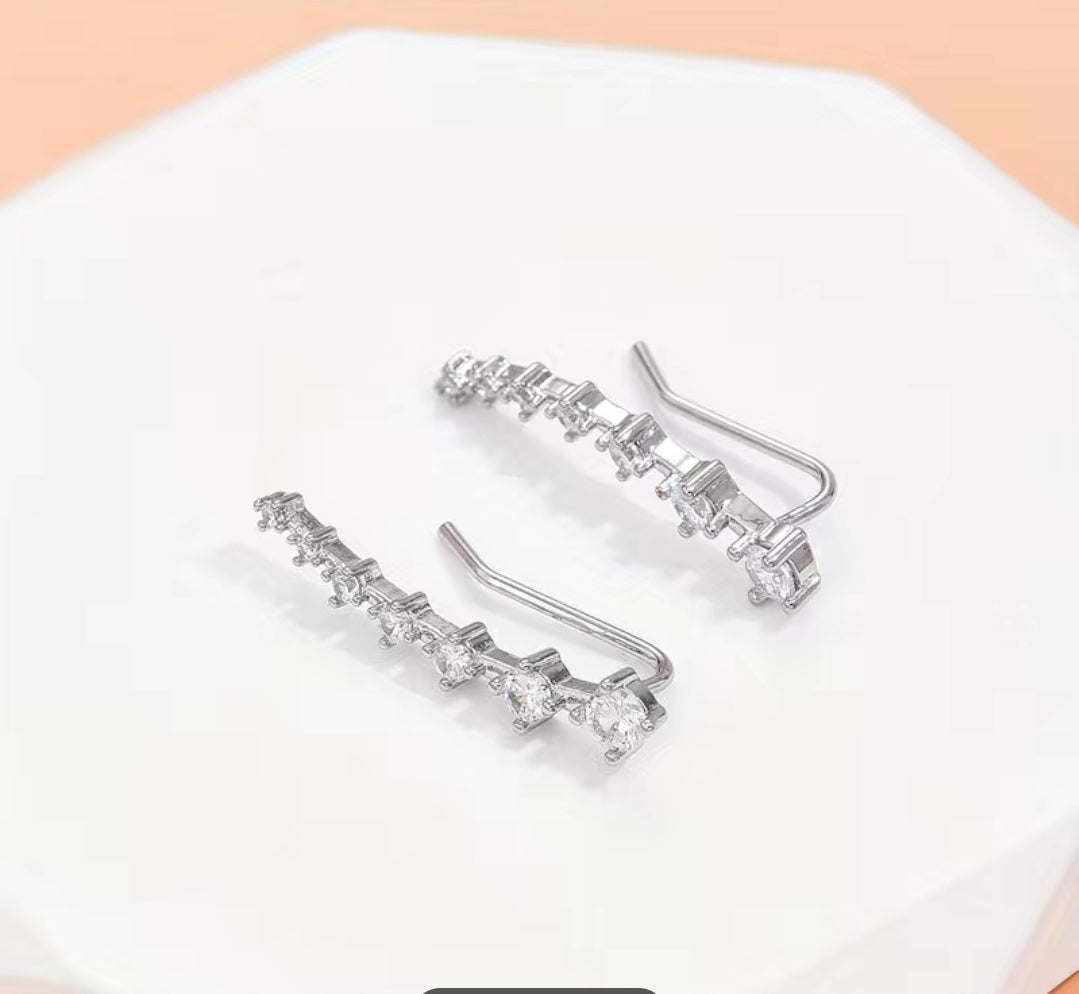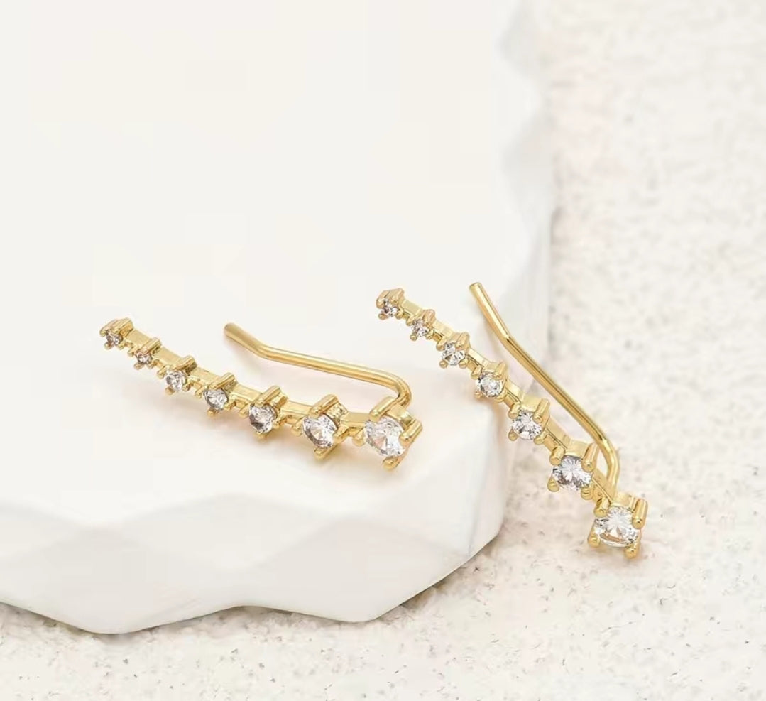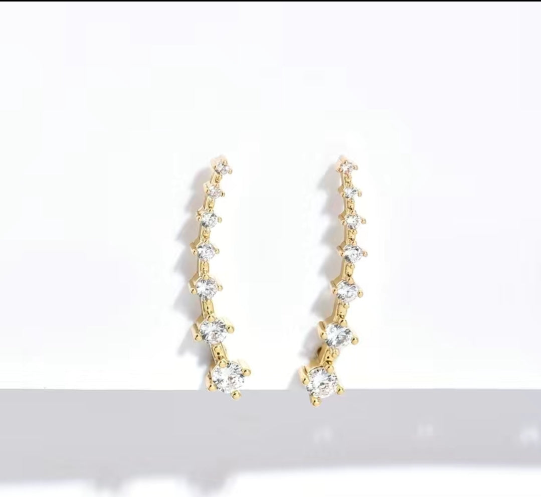 An Elegant and Minimalist look. Zircons that graduate in size are set in a 14-gold plated frame. Simple yet stylish design, perfect for any occasion.