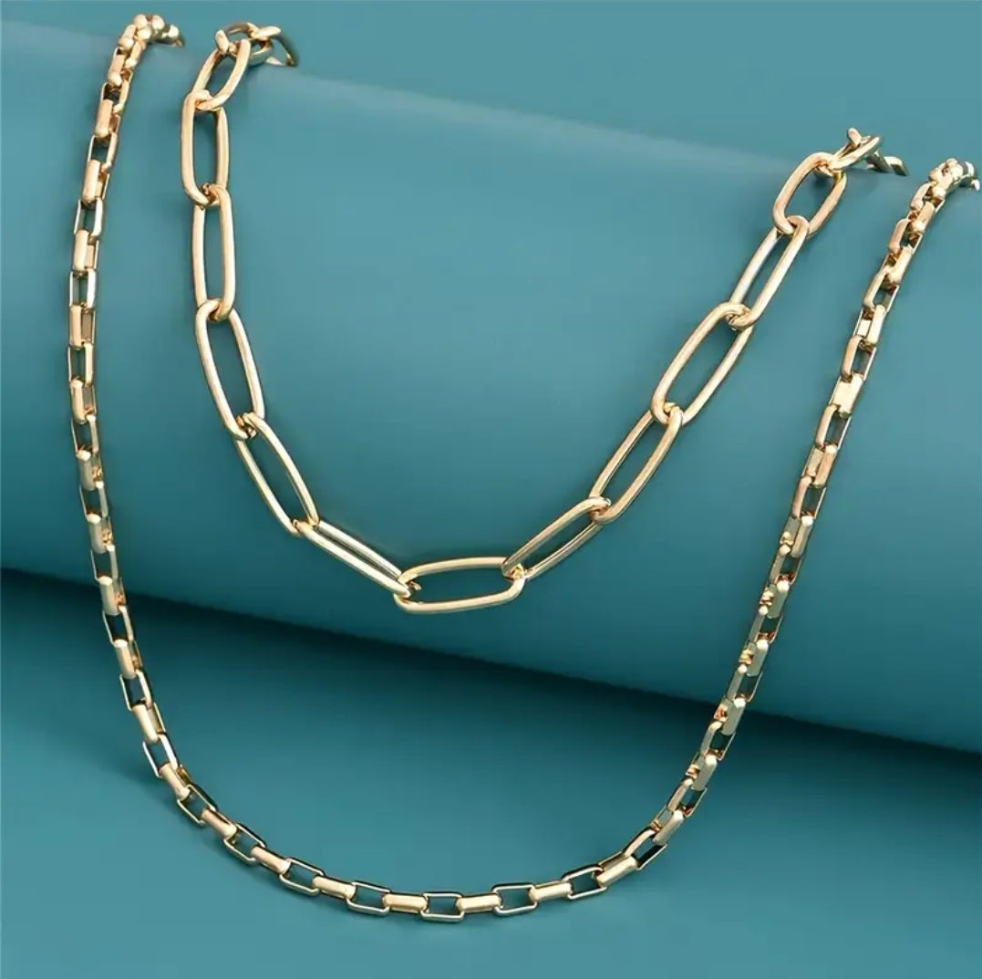 Get that instant layered look with this golden Paperclip shaped layered necklace. The versatile Clavicle chain gives this necklace a classic look. Stainless steel chains makes for durable wear.