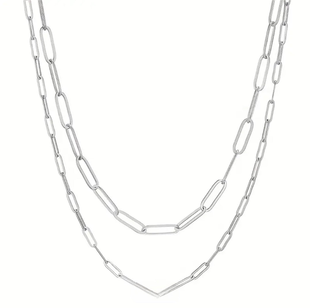 Double Trouble- Stainless Steel Silver Layered Necklace